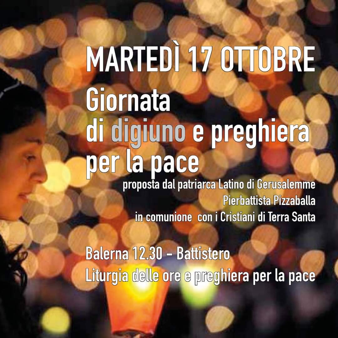 Anche il Ticino coglie l’invito del Patriarca di Gerusalemme dei Latini, Card. Pierbattista Pizzaballa, rilanciato all'Angelus del 15 ottobre 2023 anche dal Papa, ad una giornata di digiuno e preghiera per la pace per martedì 17 ottobre. Qui di seguito i vari appuntamenti.