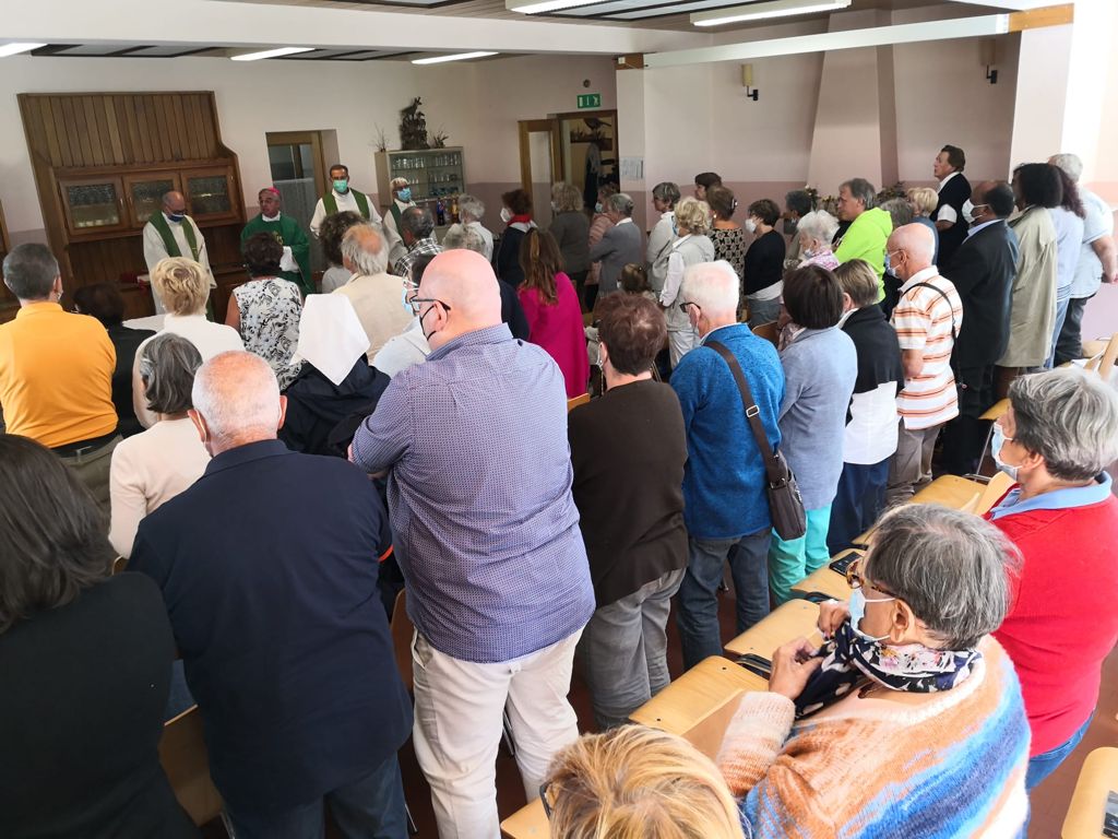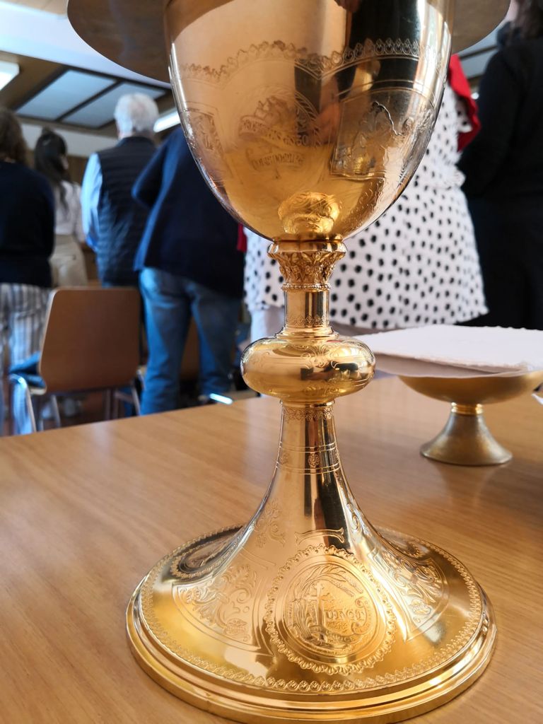 Dopo un bel momento conviviale ed un ricco buffet, alle 15.30 si é aggiunto anche il vescovo, mons. Valerio Lazzeri, per la celebrazione della messa. Nell’omelia si è rivolto alle donne presenti con parole di gratitudine e di riconoscenza, ma anche con un consapevole sguardo al presente, riconoscendo nelle donne una forza ed un lievito per l’intera diocesi. Al momento dell’offertorio è stato portato all’altare anche il prezioso calice consacrato nel 1922 dal vescovo mons. Aurelio Bacciarini e destinato per la celebrazione quotidiana nell’erigeda basilica del Sacro Cuore di Lugano, dove si trova tutt’ora. Era stato acquistato attraverso una sottoscrizione di 5 centesimi per socia, che coinvolgendo 15 mila offerenti, arrivò a raccogliere 750 franchi. Il calice, da allora, accompagna tutte le ricorrenze e i momenti significativi dell’UFCT, e pertanto non poteva mancarne neppure domenica.