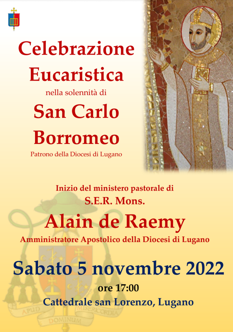 La Curia trasmette l’agenda settimanale con gli impegni pubblici di mons. Alain de Raemy per questa settimana. In particolare ricordiamo l'appuntamento del 5 novembre in occasione della solennità di S. Carlo Borromeo.