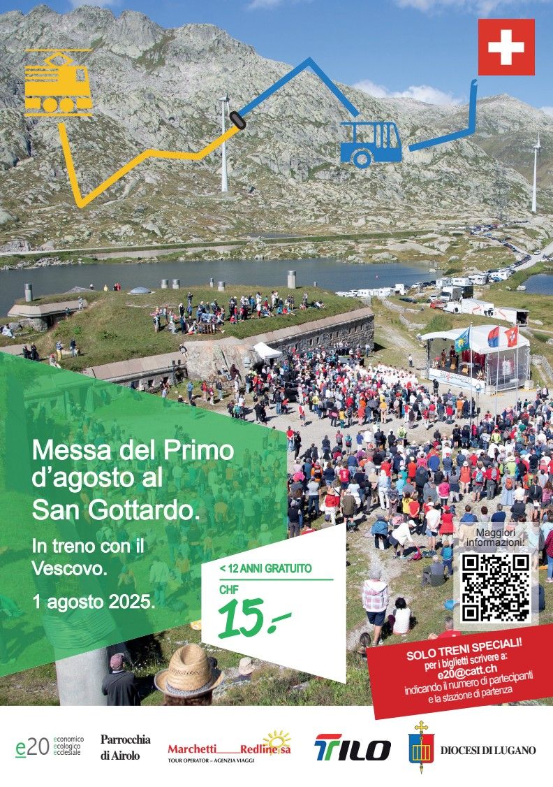 Quella del Primo Agosto sul passo del San Gottardo è una tradizione molto sentita in diocesi. Questa celebrazione si rifà a una lunga storia di pellegrinaggi organizzati proprio sul Passo fin dal Medioevo quando la montagna venne dedicata al monaco e abate, nonché vescovo di Hildesheim, San Gottardo, vissuto a cavallo dell’11esimo secolo. Cominciò così, sulle orme devozionali del nuovo Santo patrono, un’assidua frequentazione della chiesetta, seguendo la pratica delle cosiddette «sette processioni», che si tenevano annualmente, partendo dalle cinque valli circostanti la montagna. Con il passare dei secoli questa tradizione andò via via scemando, diventando, più che una devozione popolare condivisa, un’abitudine di alcuni fedeli. Finché il 1. agosto 1986, il vescovo mons. Eugenio Corecco salì sul Passo per benedire il Museo Nazionale del San Gottardo e qui ritornò in altre due occasioni, il 1. agosto del 1990 e del 1991. Si arriva così al 1. agosto del Duemila, anno giubilare, quando, davanti ai rappresentati di sei Diocesi (Lugano, Coira, Sion, Novara, Como e Milano) tra cui tre vescovi, si riunivano quattromila persone sulla piazza del forte di Airolo per partecipare a una solenne Santa Messa. Il momento fu un vero successo, al punto che si decise di riproporlo anche l’anno seguente, dandogli la denominazione di «pellegrinaggio diocesano ».