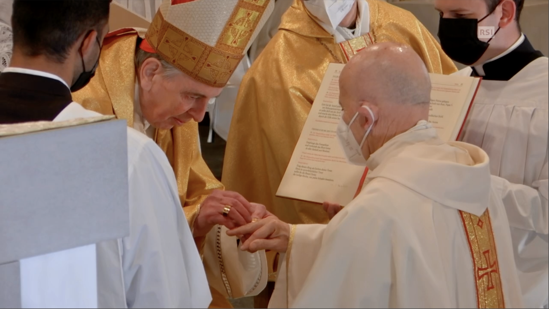 Ore 16:00 Atteso da due anni, momento molto sentito nella diocesi, in diretta le parole di benvenuto e saluto di Papa Francesco attraverso le parole di Mons. Bürcher. Cattedrale eccezionalmente con pubblico, permesso speciale per far entrare 100 persone, ottenuto da Berna, dal Consiglio Federale.