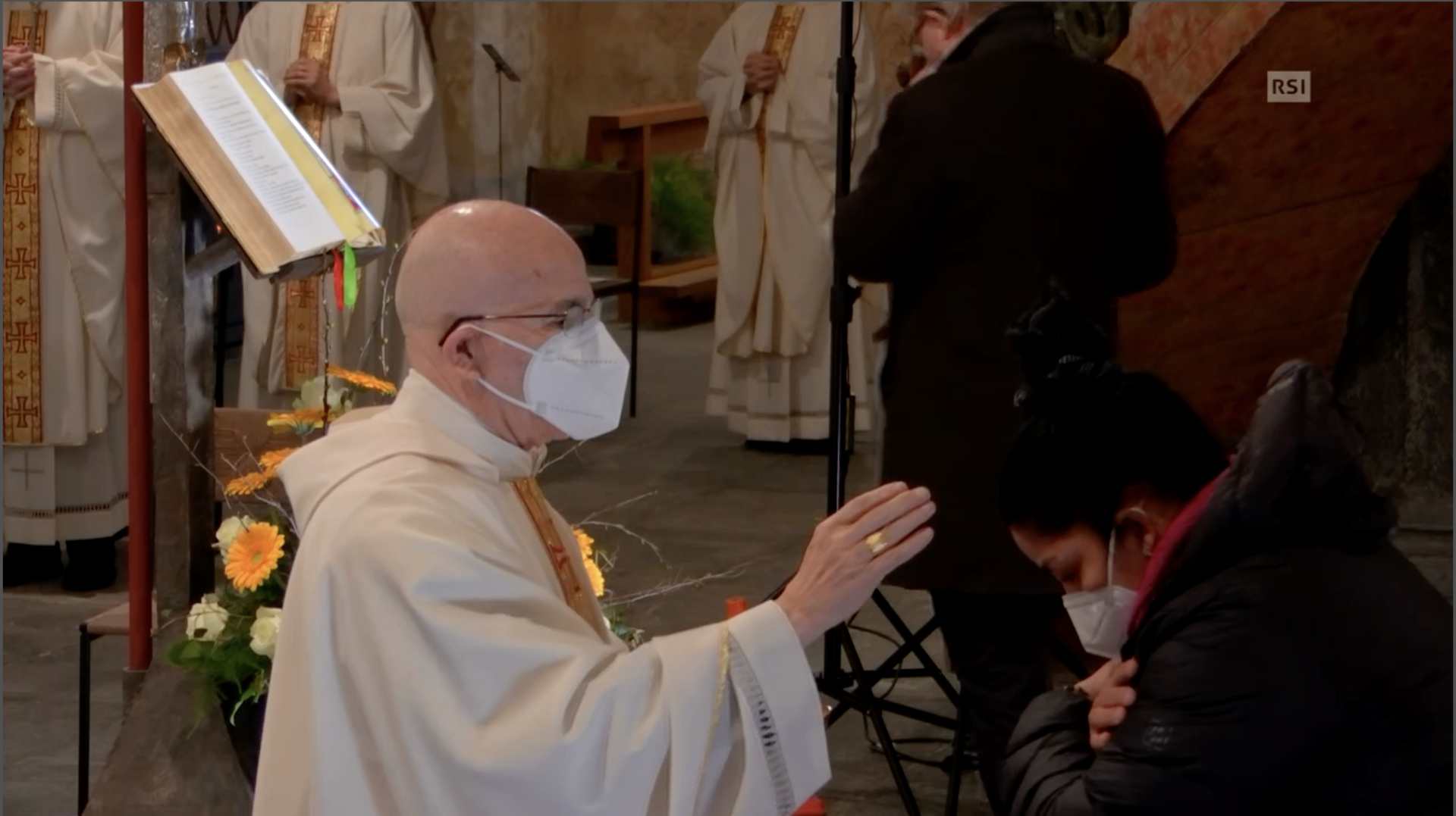 Ore 18:00 Le prime parole da Vescovo: grazie, sono commosso. Ho pensato a tre fasi: preghiera, scambio e la sinodalità. Imparare ad ascoltarci e ad ascoltare Dio. E anche a me è capitato di non farlo. Non sarà il trionfo della maggioranza sulla minoranza. Lasciamo fiorire la diversità. Ogni uomo e ogni donna è ambasciatore di Dio. Abbiamo vissuto una malattia in questa diocesi e ora dobbiamo curarla. Ho scelto il pastorale più antico, forse V sec dopo Cristo. Di chi portava la buona novella. E io voglio uscire, decentralizzare. Non occuparci di noi stessi. Non sono le strutture diocesane che interessano, ma l'essere umano. Ogni parrocchia deve diventare una chiesa in uscita. Unire, integrare come scritto in Amoris Laetitia. Il cerimoniale prevede che percorra la navata e benedica ma io sarò qui al centro in ginocchio e sarete voi a benedirmi. (Qui il testo completo https://www.bistum-chur.ch/aktuelles/saluto-finale-del-vescovo-joseph-m-bonnemain/)