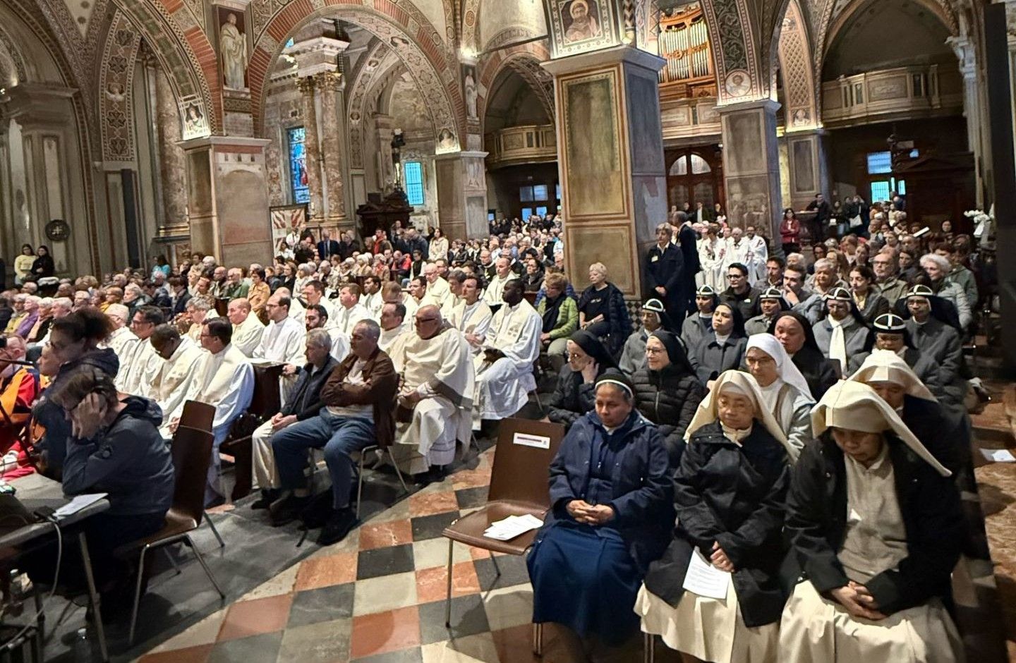 Nell’omelia mons. Alain ha raccontato di aver fatto visita recentemente al cardinale emerito di Milano, Angelo Scola e di aver ricevuto da lui in “anteprima” l’omaggio del volume con la prefazione di papa Francesco. Il libro di Scola è dedicato al tempo dell’anzianità ed ha il titolo “Nell’attesa di un nuovo inizio, Riflessioni sulla vecchiaia” (Città del Vaticano, Libreria Editrice Vaticana, 2025). Proprio dalla prefazione firmata da Bergoglio una settimana prima del ricovero al Gemelli, l’Amministratore apostolico ha preso spunto citando: “La morte non è la fine di tutto, ma l’inizio di qualcosa. È un nuovo inizio (…), perché la vita eterna, che chi ama già sperimenta sulla terra dentro le occupazioni di ogni giorno, è iniziare qualcosa che non finirà. Ed è proprio per questo motivo che è un inizio “nuovo”, perché vivremo qualcosa che mai abbiamo vissuto pienamente: l’eternità. (citazione dal libro Nell’attesa di un nuovo inizio)”. Queste parole e altre di papa Francesco ricordate dal vescovo, contengono un messaggio forte e potente: “L’eternità dell’amore, l’eternità di solo Amore!” che è quello che sta ora vivendo il Papa.