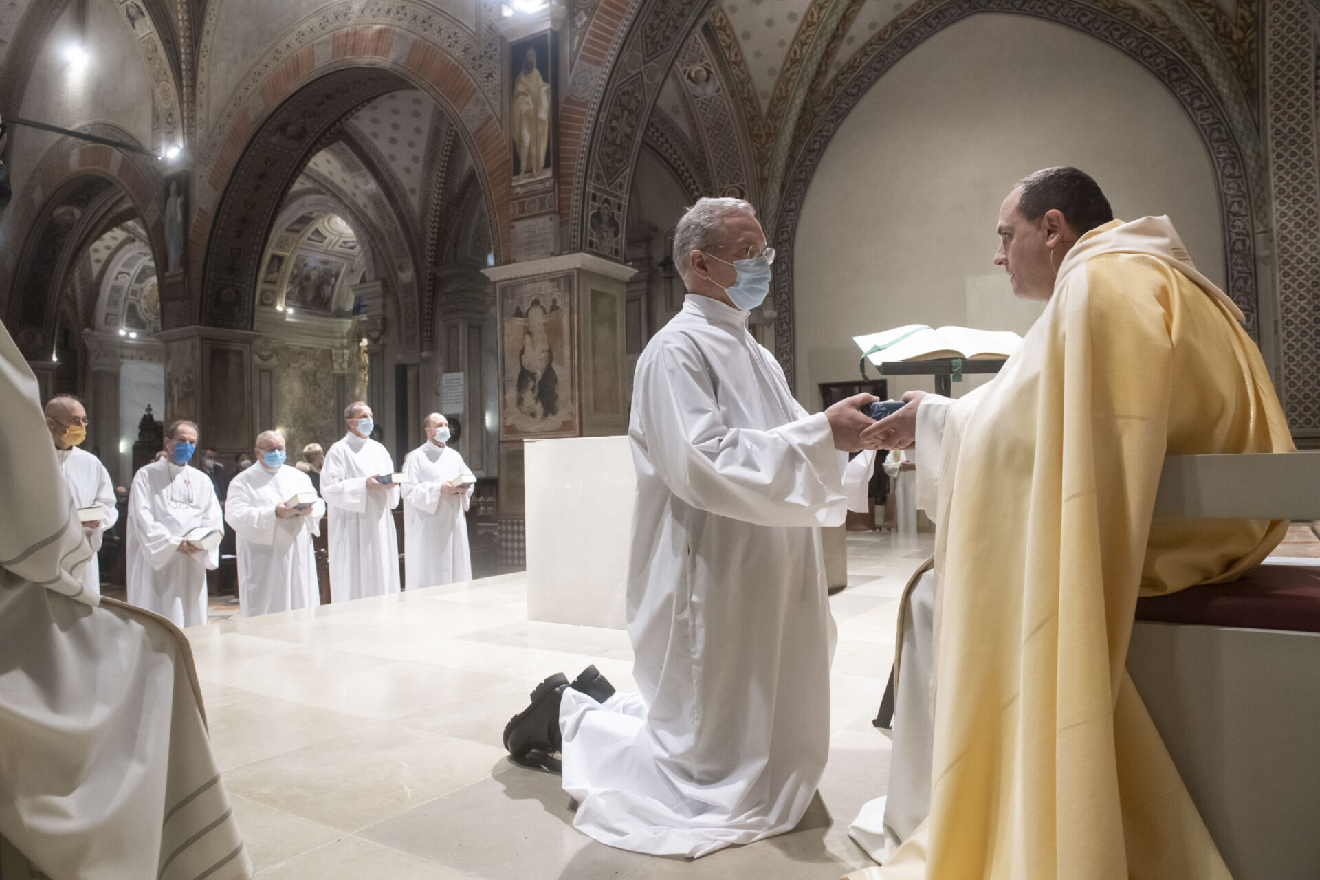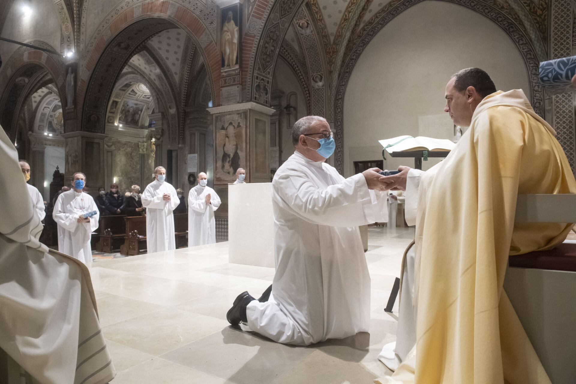 Mons. Nicola Zanini, Vicario generale, ha presieduto ieri, domenica 23 gennaio 2022, la recita dei Vespri nel giorno dedicato alla “Domenica della Parola”. Durante il momento di preghiere è stata simbolicamente consegnata la Sacra Scrittura ai nuovi lettori. Nella foto (da sinistra): Davide Adamoli, Luca Turlon, Claudio Marazzi, (Don Sergio Carettoni, responsabile della formazione),( Mons. Nicola Zanini, vicario generale) Paolo Binda, Bruno Corsini e Paolo Vicentini.