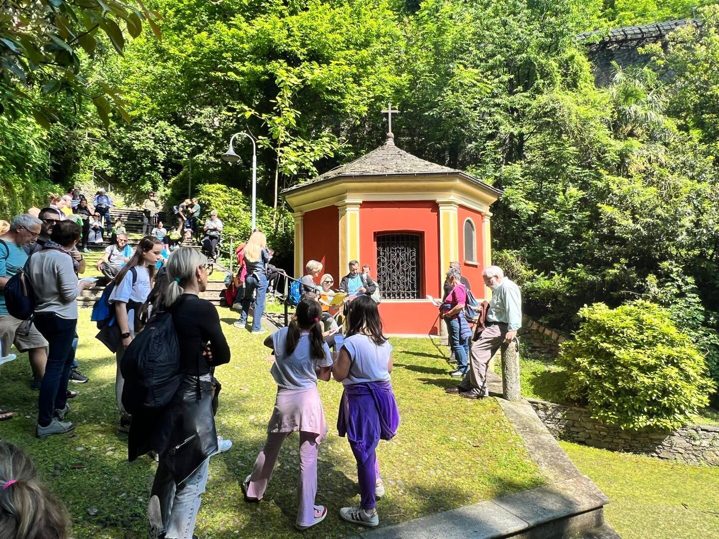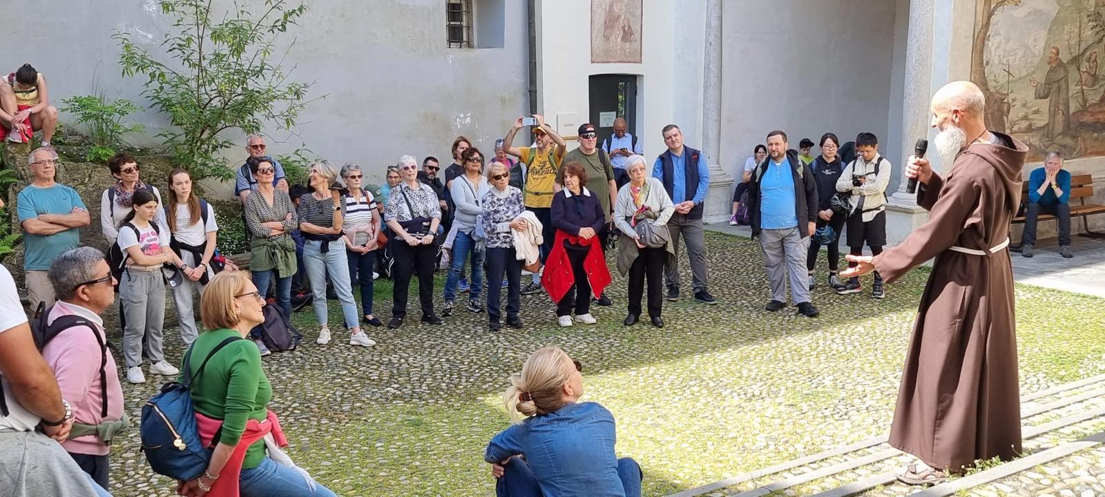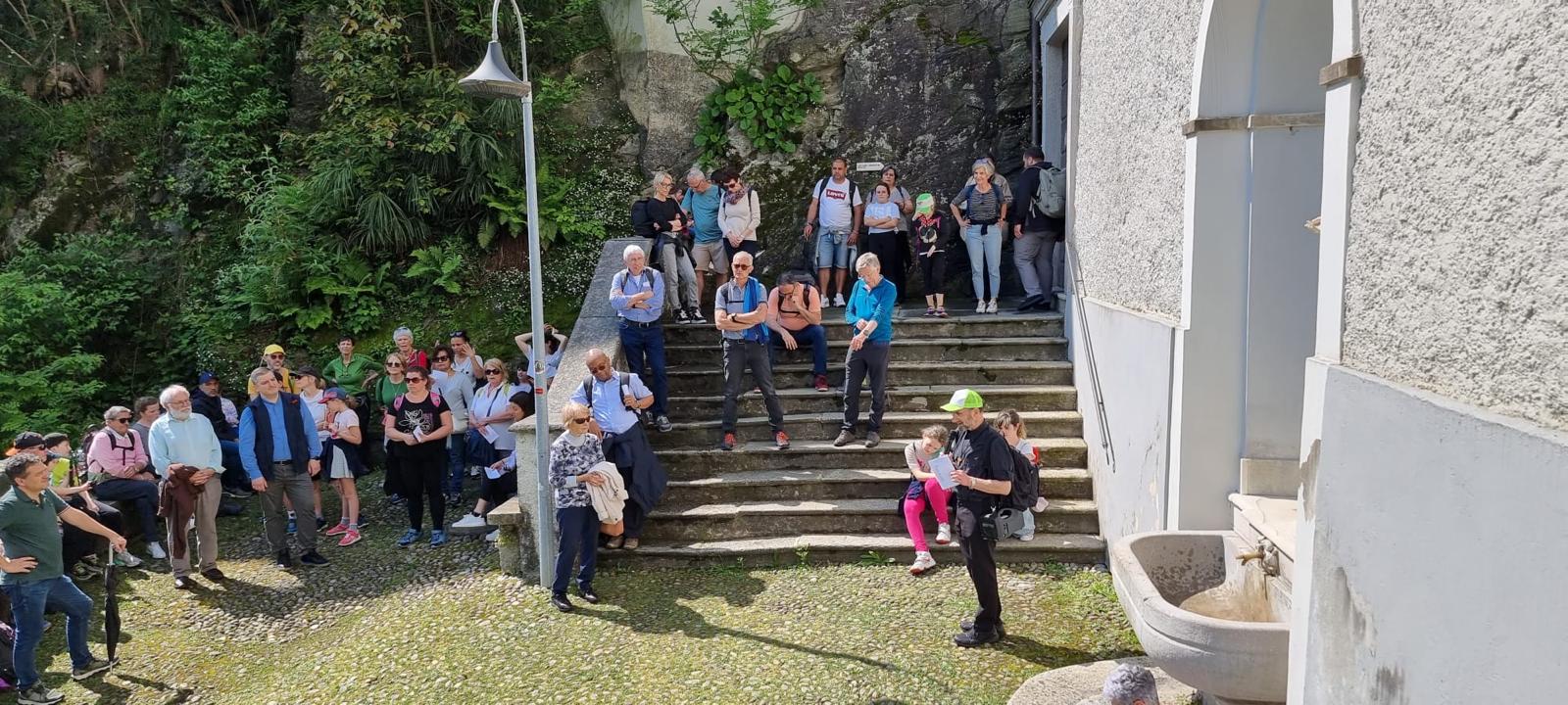 "Buona parte della comitiva si è recata a Locarno con il treno, mentre le famiglie salite in automobile ci hanno raggiunto alla Chiesa dell’Annunciata. Abbiamo quindi percorso assieme la cosiddetta via del Sacro Monte, le cui cappelle accolgono statue a grandezza naturale che ripropongono episodi importanti della vita di Gesù e della Vergine. Ci siamo soffermati in canto e in breve preghiera anche davanti alla cappella della Visitazione, che ricorda appunto la visita di Maria a sua cugina Elisabetta, una bella immagine di condivisione fra due donne. Il tragitto, breve e ripido, è suggestivo e tutti l’hanno percorso con piacere.